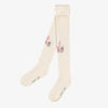 Cream tights featuring a pink bunny illustration at the knee. Their neutral color makes them easy to pair with any outfit. Perfect to wear with her favorite skirt or dress!