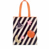 Our trick or treat tote is made in soft stripy fabric, with brightly coloured embroidered halloween charms! Fully lined with pink stripy fabric and a fabric handle, this bag is perfect for trick or treating and the tote shape gives plenty of space for all those sweet treats!