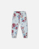 Fleece Sweatpants Light Blue Printed Big Flowers