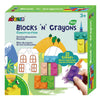 Avenir Blocks 'N Crayons: CONSTRUCTION, 12 colours and 3 block shapes, 3 colouring sheets, in beeswax (10%), in box, 3+