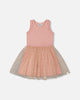Bi-Material Dress With Printed Dots On Mesh Skirt Warm Old Pink