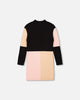 Color Block Knitted Sweater Dress Pink, Beige And Black