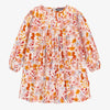 Cream dress with long sleeves and flower all over print in viscose, child