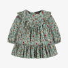 GREEN LONG SLEEVES DRESS WITH RUFFLE AND FLORAL PATTERN IN VISCOSE, BABY