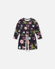 Long Sleeve French Terry Tunic Black Botanical Flowers Print
