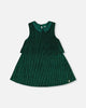 With its rich color and soft texture, our Sleeveless Dress with Eyelet Collar Forest Green is perfect for any holiday celebration! This adorable party dress features a tiered A-line silhouette with a vertical ribbed texture and a sleeveless bodice with a keyhole and button closure at the back of the neck. An eyelet collar adds contrasting texture and an ultra-sweet touch!