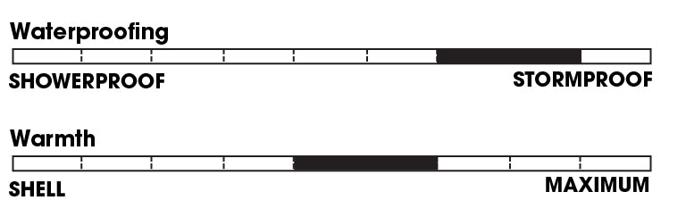 Outer: 10,000mm Waterproof & Windproof 100% Recycled rPET Tricot Shell with bonded 100% Recycled rPET Microfleece lining