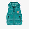 TURQUOISE SLEEVELESS PUFFER WITH HOOD, BABY