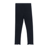 With a soft rib knit texture, our Solid Legging Black is one that she'll want to wear over and over again. This stretch cotton/elastane legging features an elastic waistband, lettuce edging, and a small logo label at the hem. Team with a ribbed top or mix and match with any of her favorite tees.