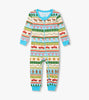 Celebrate the season in style with the Baby Blue Fun Fair Isle Cotton Sleeper, crafted from 100% cotton for cozy, breathable comfort. This footless, snug-fitting sleeper features a festive array of Christmas trees, reindeer, candy canes, Santa faces, gingerbread men, and classic red trucks, arranged in cheerful stripes of red, green, blue, and gold. Designed with a round neckline, long sleeves, and blue cuffs at the wrists and ankles, it’s finished with a front zipper that runs from neck to leg for easy, stress-free changes. The interior zipper guard and top snap closure ensure extra safety and comfort, making this sleeper as functional as it is merry.