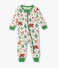 Cozy up your little one in the Baby Holiday Animals Cotton Sleeper, a snug and festive essential made from 100% cotton for breathable, all-night comfort. This footless, tight-fitting sleeper features a charming holiday print with deer, bears, birds, Christmas trees, holly leaves, and twinkling lights, all beautifully set against a soft, cream-coloured background. With long sleeves and vibrant green cuffs at the wrists and ankles, it blends holiday cheer with a touch of woodland wonder. Designed for easy dressing, it includes a full front zipper, interior guard, and snap-tab closure at the neck for a secure and gentle fit.