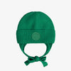 Green knit toque with cords, baby