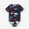 Blue one-piece swimsuit with cool whale illustrations. A trendy and convenient bathing suit!
