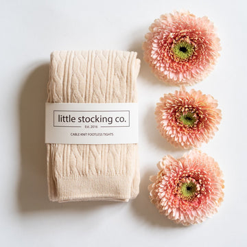 HEATHERED IVORY CABLE KNIT TIGHTS