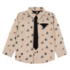Boys Beige Printed Shirt With Removable Tie