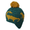 Made for the dino-lovers. Coloured pom, warm ear flaps and a knit dinosaur pattern on a striped background, these are made to be your kids’ favourite toque this winter.