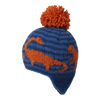 Made for the dino-lovers. Coloured pom, warm ear flaps and a knit dinosaur pattern on a striped background, these are made to be your kids’ favourite toque this winter.