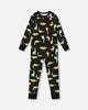 Organic Cotton Two Piece Pajama Set Black With Dinosaurs Print