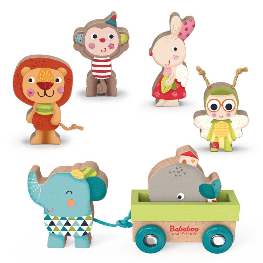 Our charming wooden play figures are the perfect addition to our books and play stories. Children can act out the stories or let their imaginations run wild with their favorite characters. Bababoo and friends® can be physically brought on countless adventures anywhere.