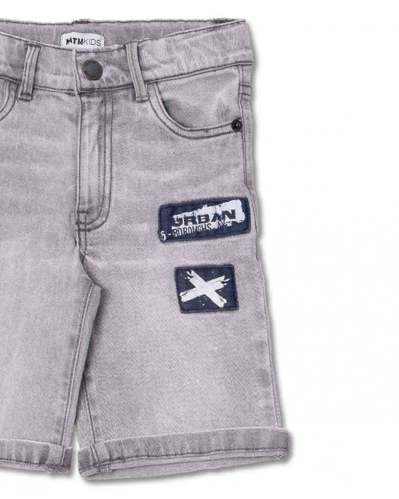Flat gray Bermuda shorts with front pockets and zip and button fastening for boy. NATHKIDS Urban Activist Collection.