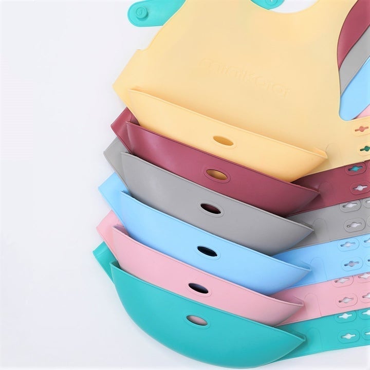 The most incredibly designed bib is here! The Minikoioi Flexi-Bib. Made from 100% non-toxic food grade silicone, it is stain proof, easily cleaned, has a crumb catcher for any spills and compact in design.