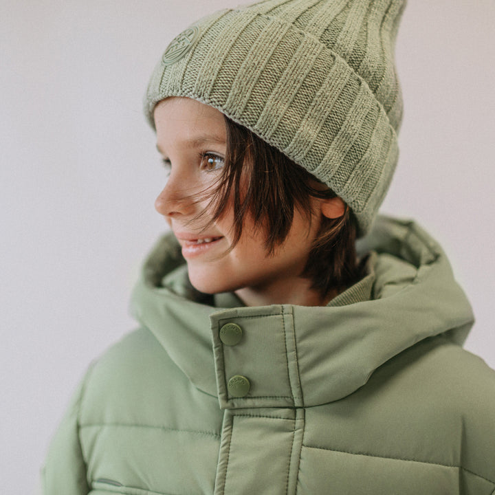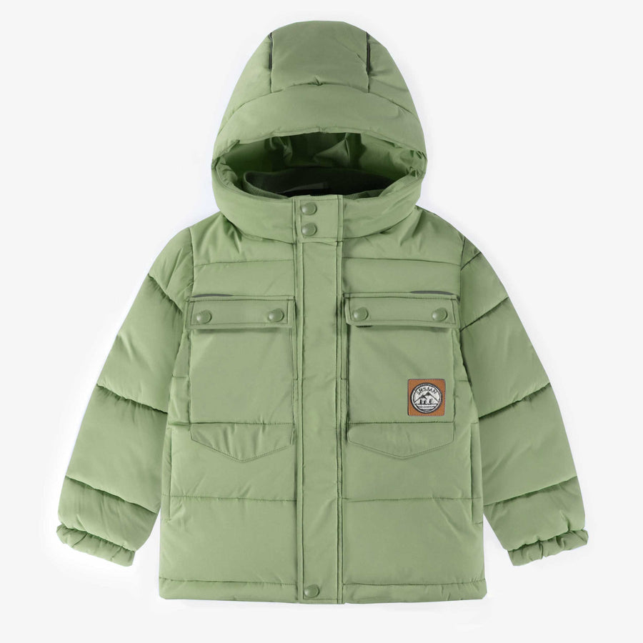 This green hooded puffer coat has been designed with very specific features ensuring the protection and comfort of your child. The fabric is made of high quality soft materials and allows your mini to stay dry during outdoor activities. Nylon with a peach touch and a 100% polyester taffeta lining.