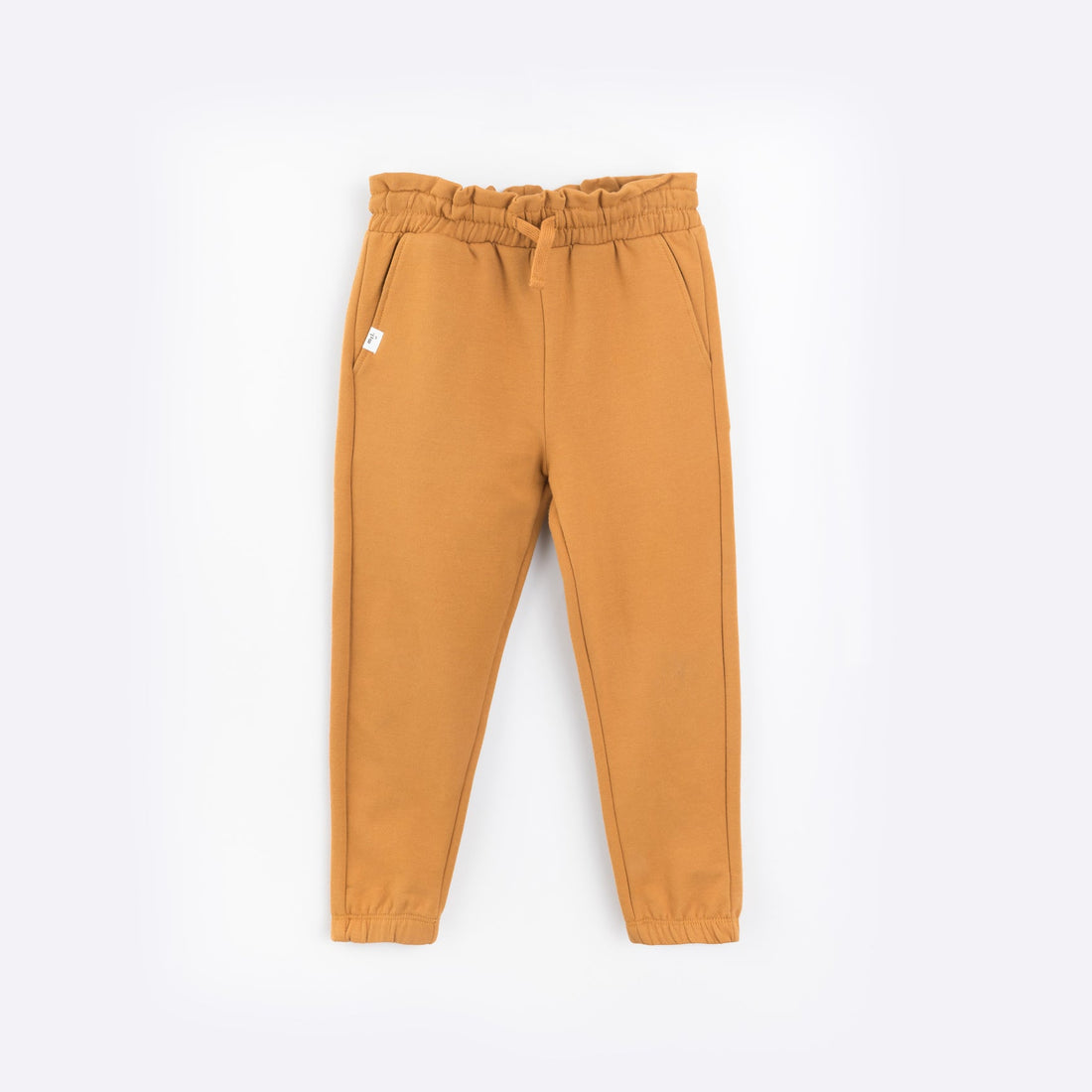 These mustard-colored joggers are totally on trend, and are finished with a gathered, paper bag waist. Made from a warm organic cotton fleece, the joggers are a great wardrobe staple for the chilly months. Create a casual yet stylish outfit by pairing with a colored t-shirt or crewneck from the same range.