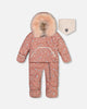 Insulated to keep little ones warm in temperatures as low as -30° C (22° F), our One Piece Baby Hooded Snowsuit Printed Vintage Flowers Designed for Car Seat is a perfect choice on a frigid day! This plush-lined suit is detailed with a cozy sherpa-lined hood with removable faux fur trim, an asymmetrical zipper closure, and sherpa-lined flip over hands and feet for added warmth. The construction of the top allows for easy and safe attachment to car seat harness straps. A coordinating neckwarmer is included!