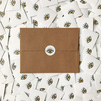 Printed on FSC-certified 100lb uncoated stock / Recycled brown kraft envelope / Envelope seal / Packaged in a cellophane sleeve