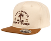The Rockswell snapback hat has all beige paneling with an embroidered BNKY logo on front and a brown bill. This hat is 100% cotton.